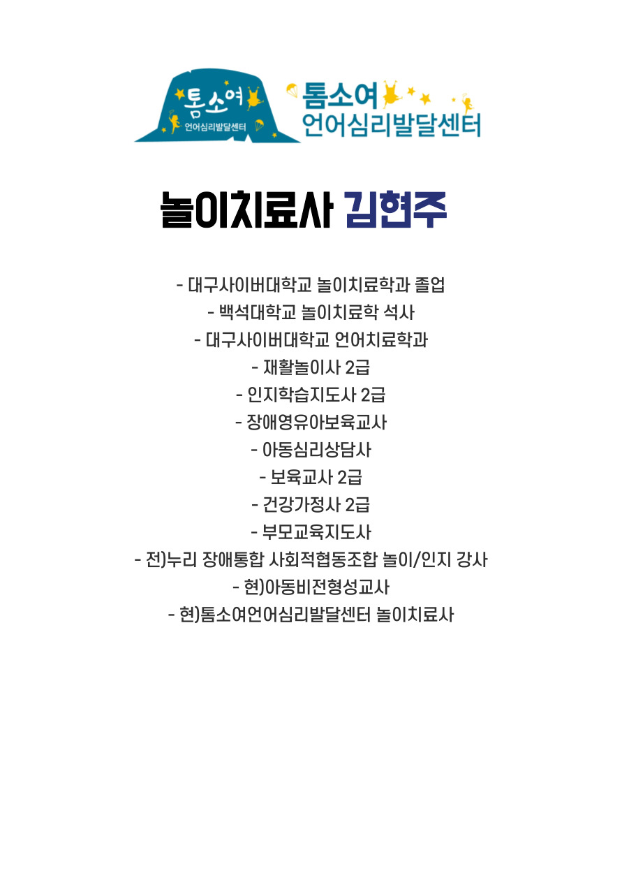 [ 놀이치료사 ] 김현주